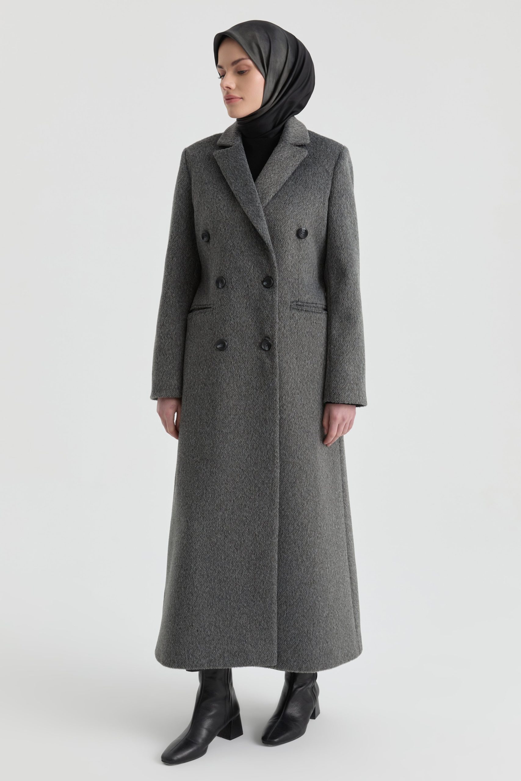 معطف ذو صدرين وحزام رفيع – أنثراسايت