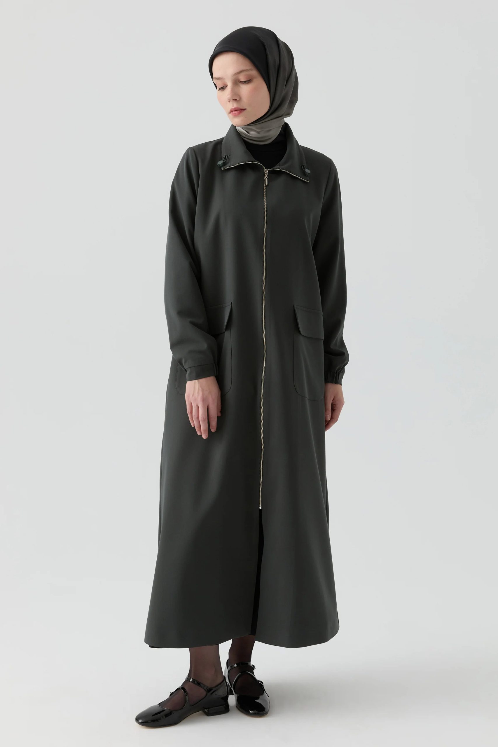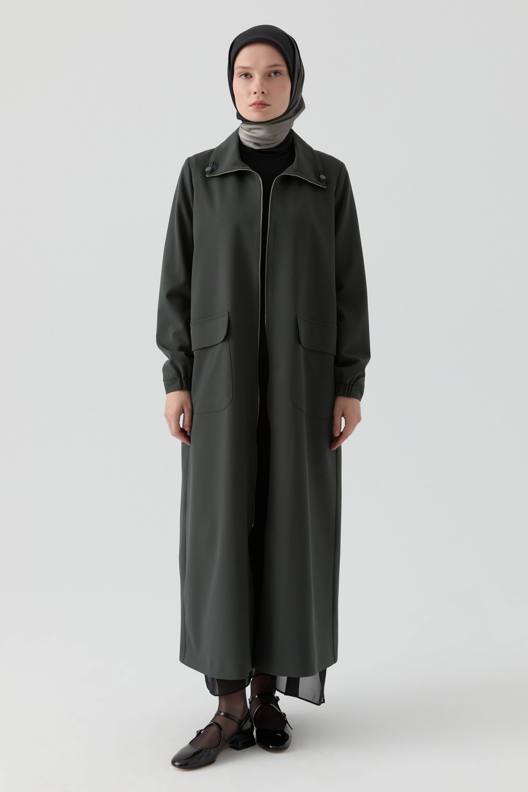 معطف ذو قلنسوة بتفاصيل مطاطية – لون البترول