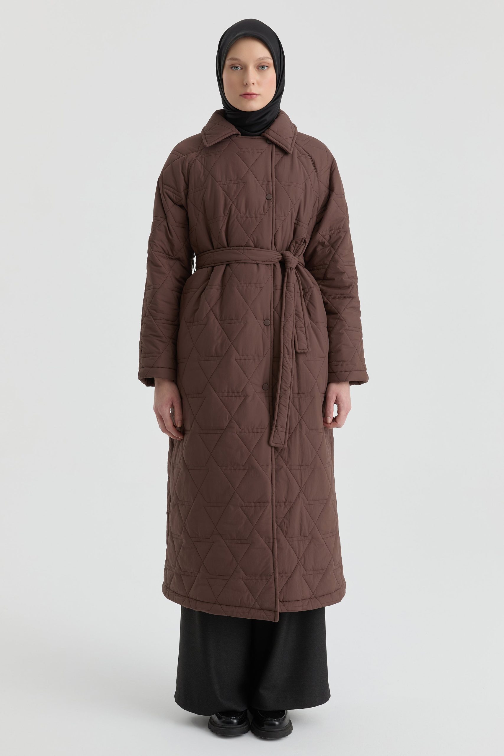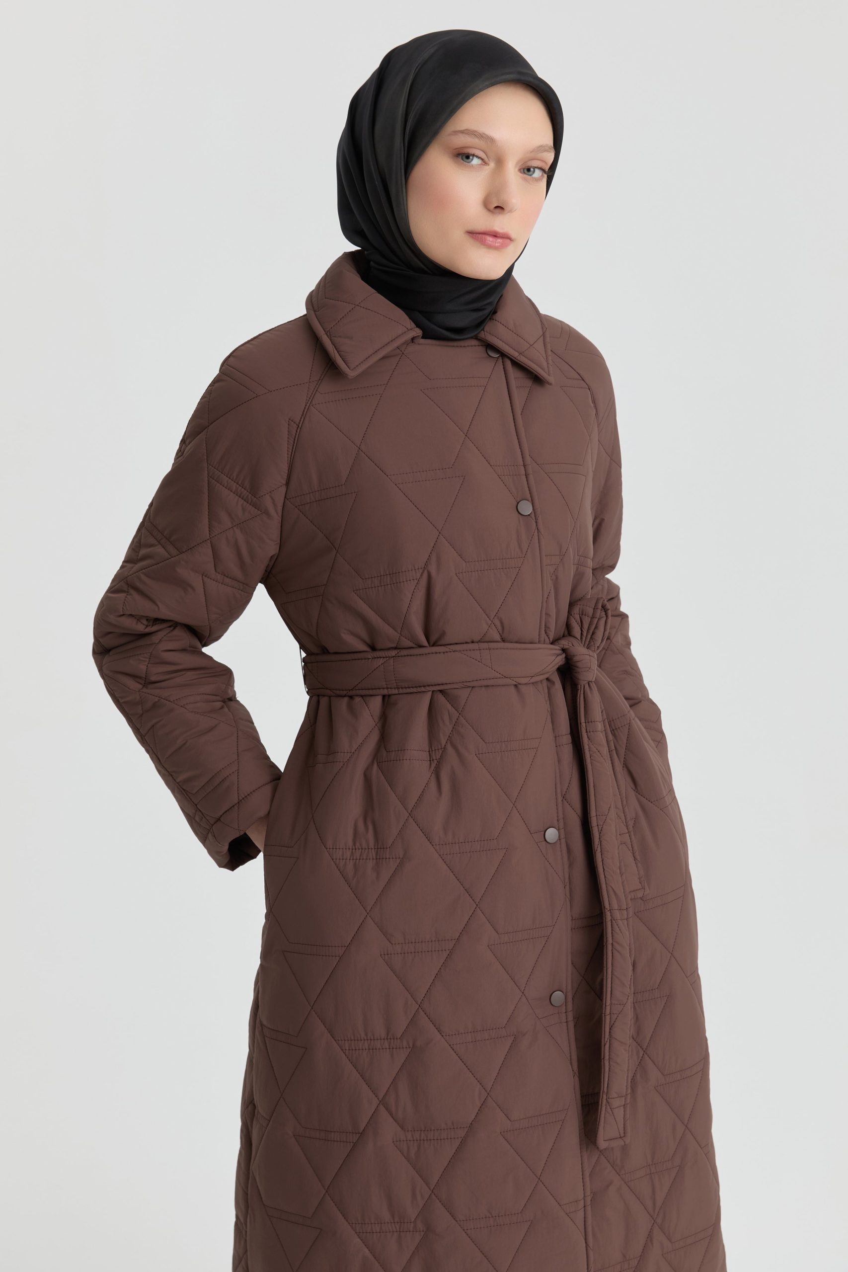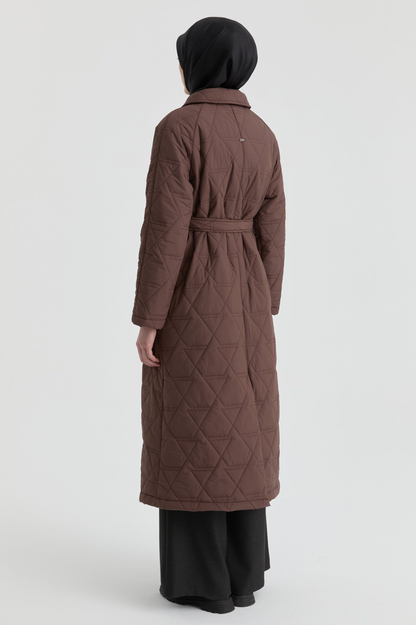 يمزج هذا المعطف بين الخطوط الكلاسيكية والتصميم العصري من خلال تفصيل ياقة الشال، مما يمنح مظهرًا أنيقًا للأناقة الحضرية بخطوطه النظيفة وشكله المنظم.