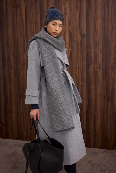 معطف طويل رمادي ملانج مقاوم للرياح