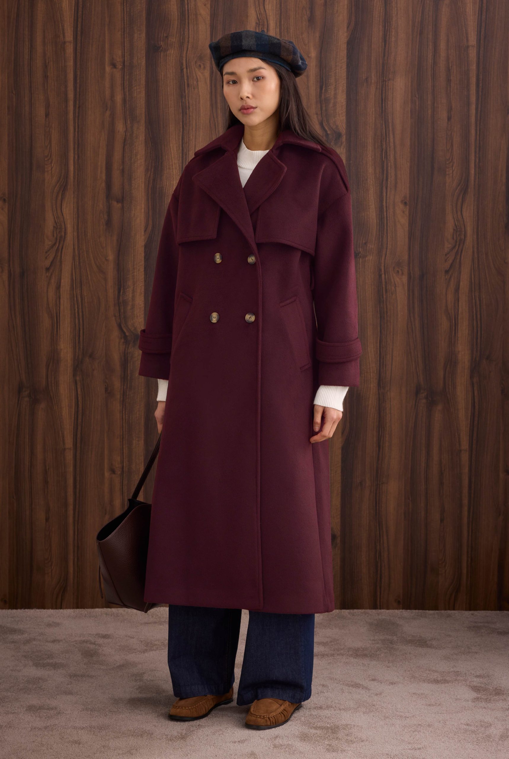 يقدم هذا المعطف المصنوع من خليط الصوف ملمسًا دافئًا وناعمًا، بينما يعمل حزام الخصر على إبراز القوام بأناقة. خطوطه النظيفة تخلق بساطة عصرية، وشكله المتدفق يضيف أناقة طبيعية ومتطورة للستايل الحضري.