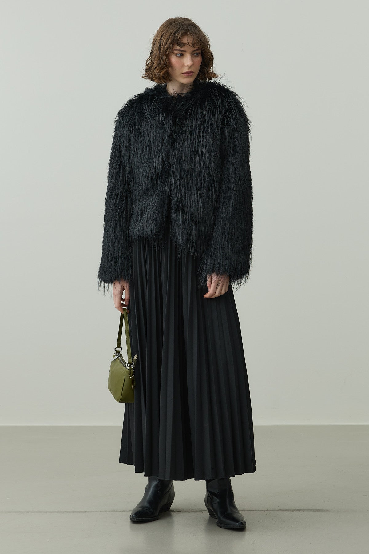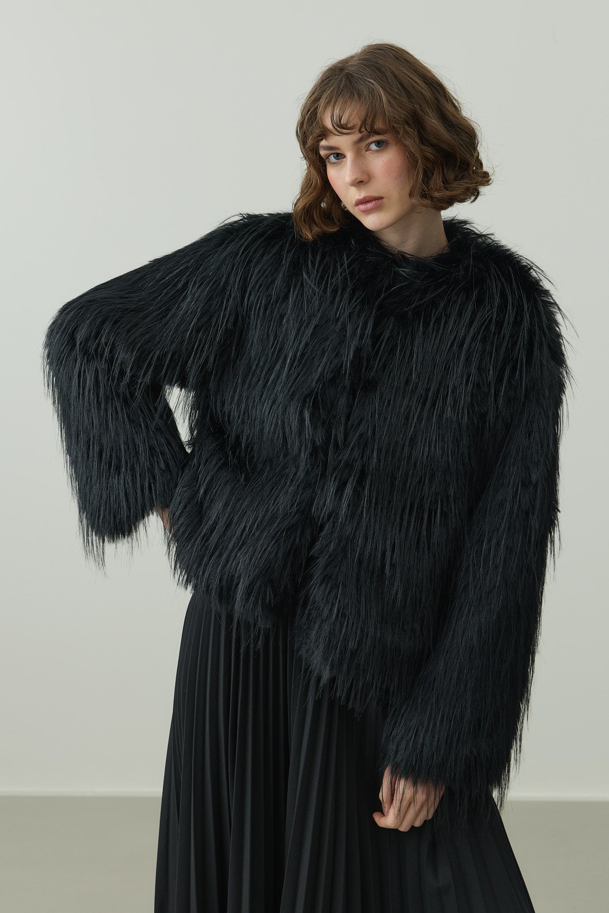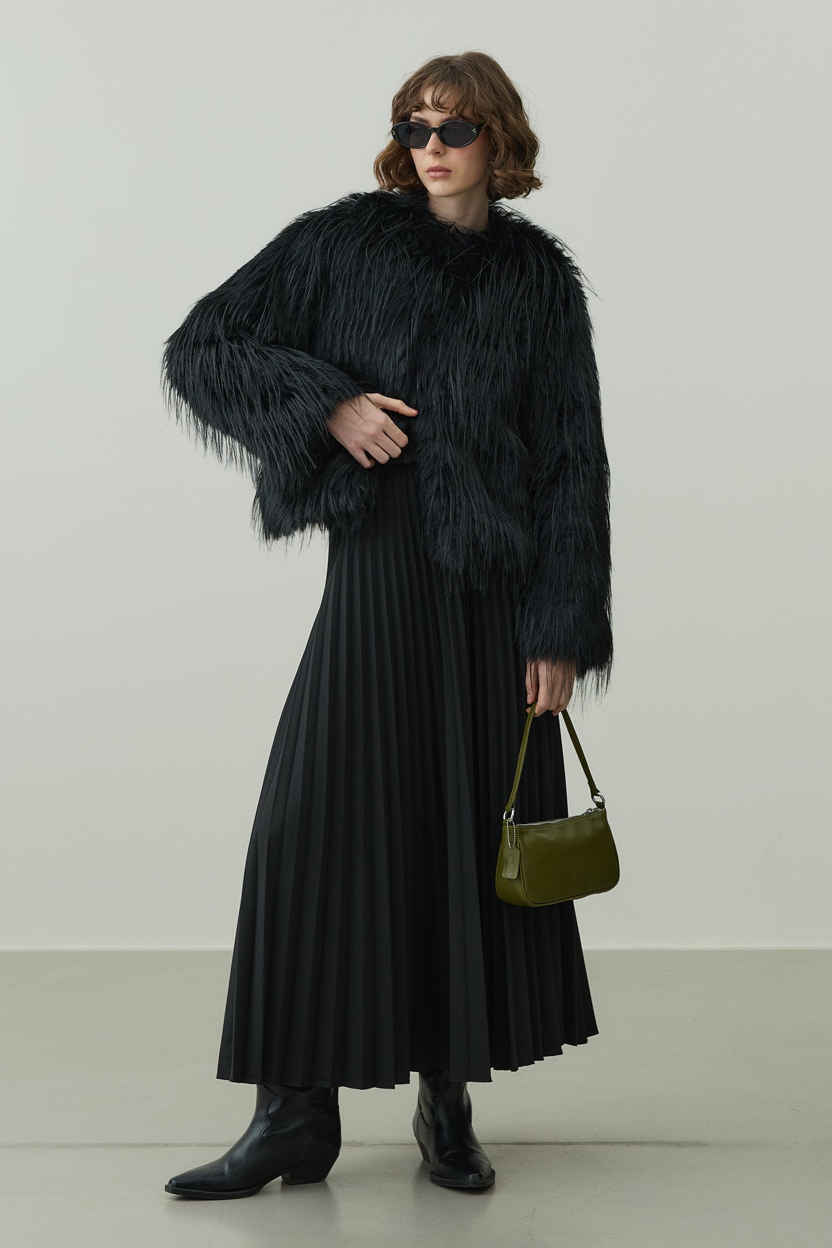 قماش فراء عالي الجودة، مبطن، بأكمام طويلة، معطف قصير