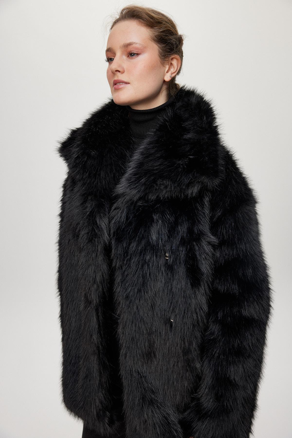 معطف فرو قصير أسود 13828