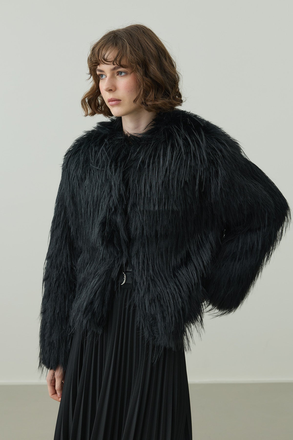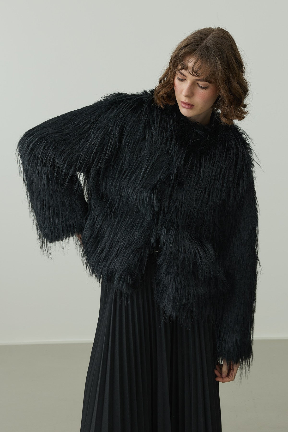 مصنوع من قماش فرو عالي الجودة، مبطن، بأكمام طويلة، معطف قصير