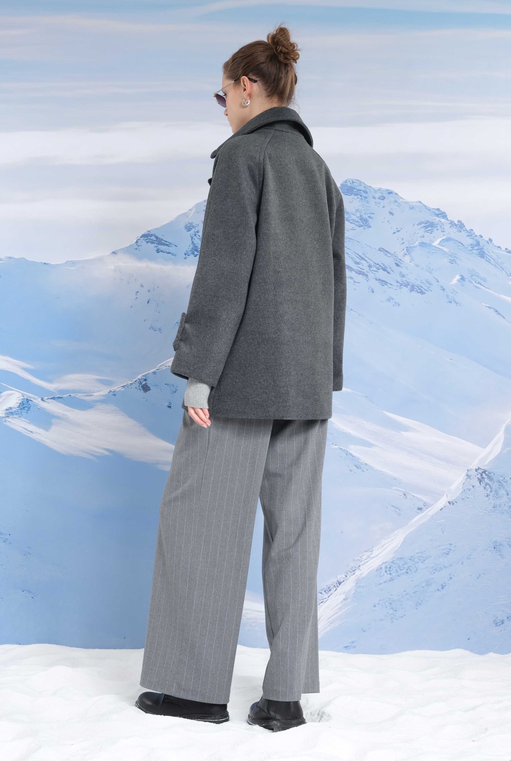 معطف قصير ذو صفين من الأزرار باللون الأنثراسايت