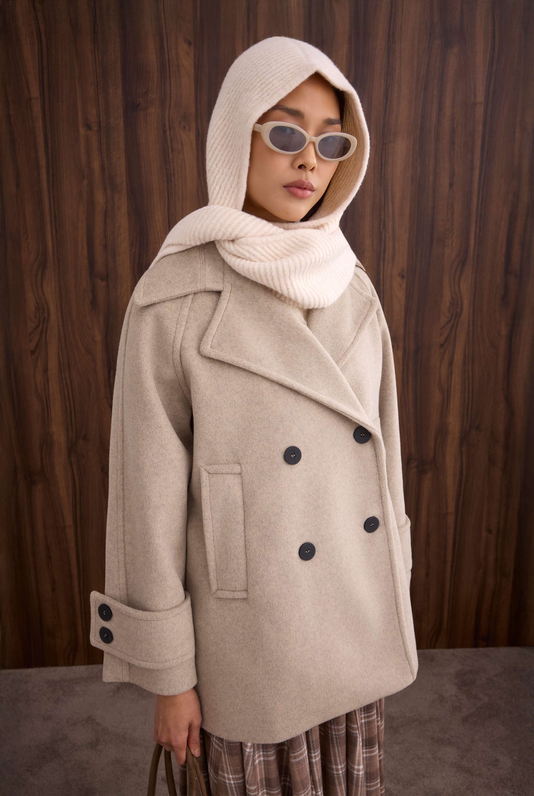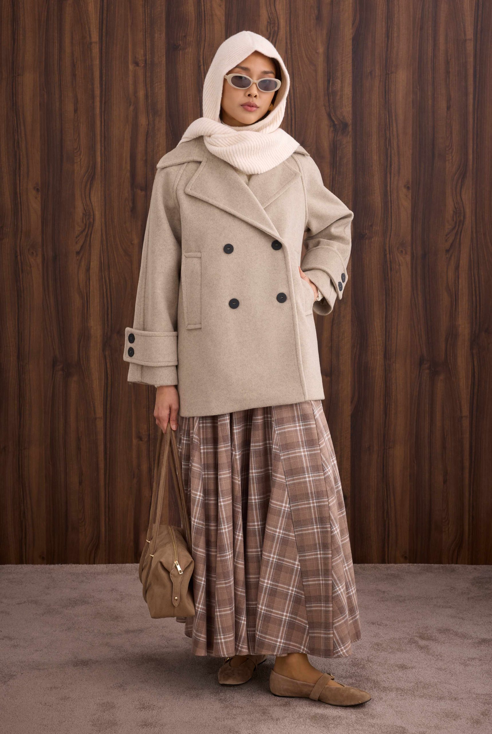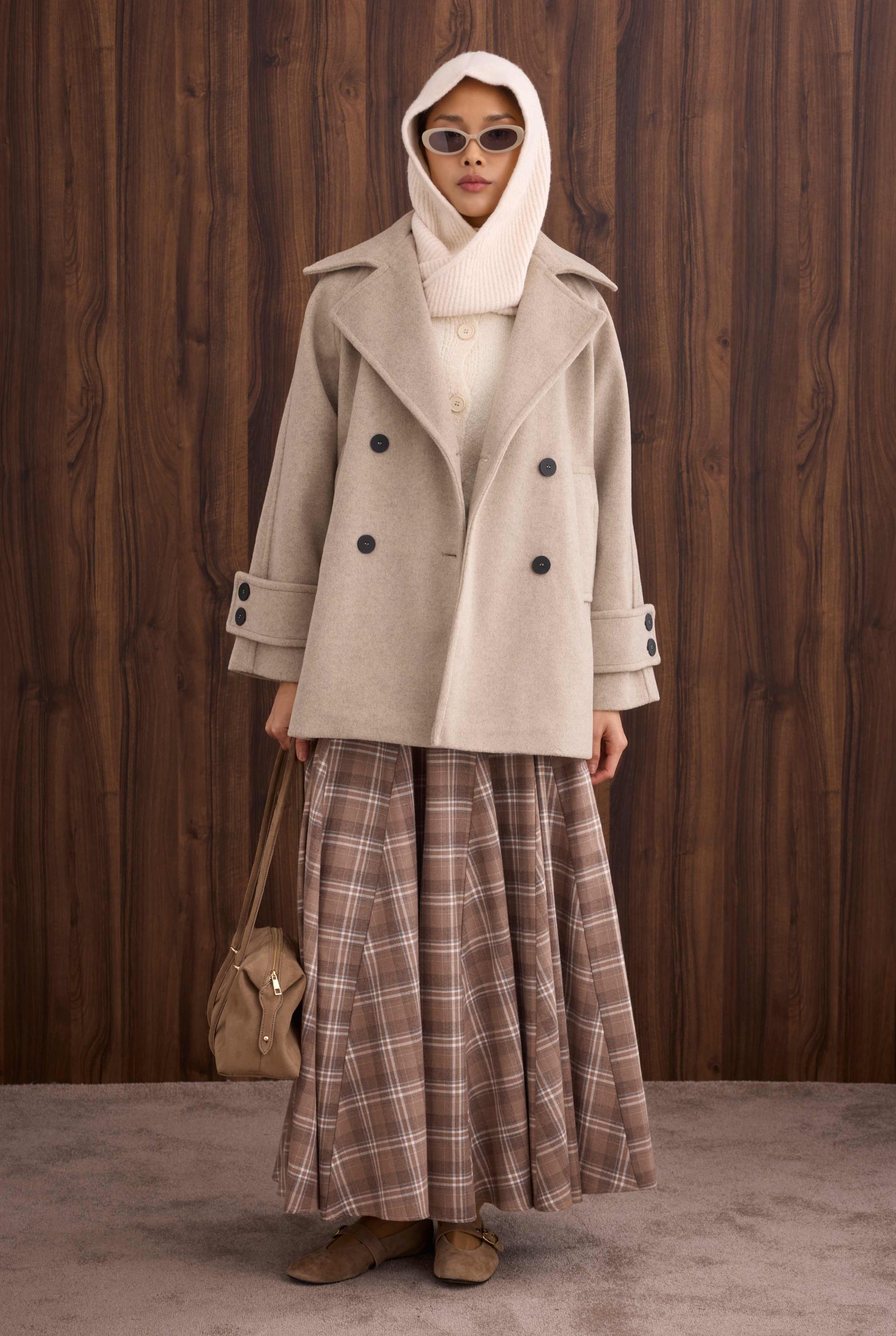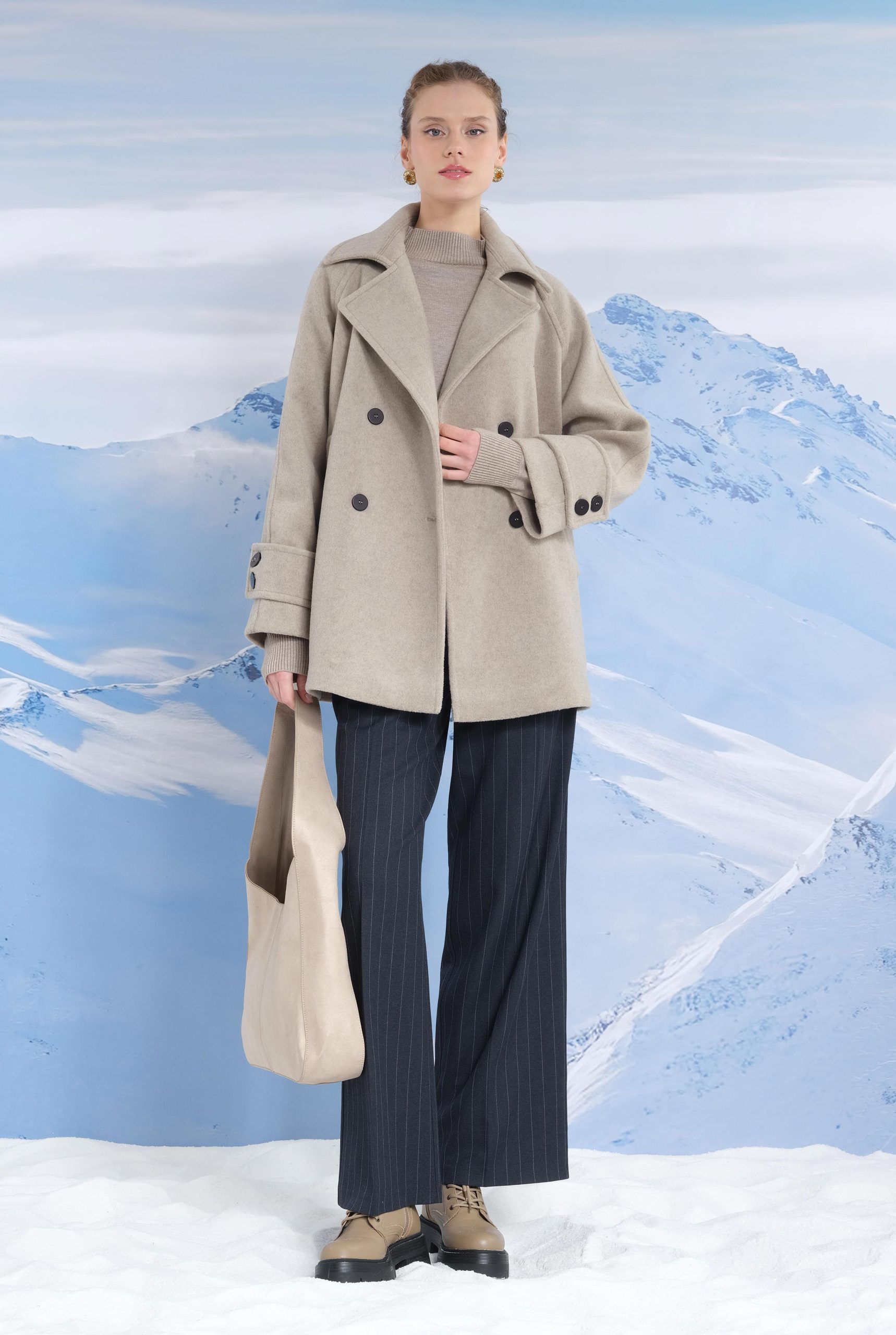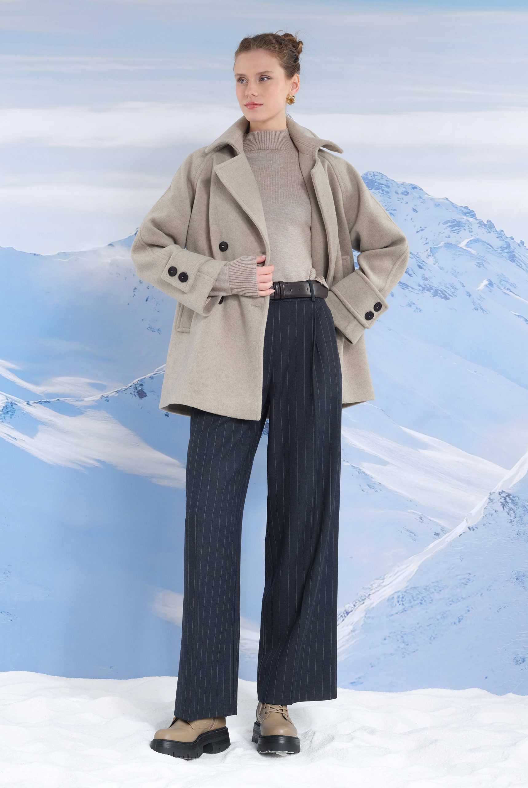 يقدم هذا المعطف المصنوع من خليط الصوف ملمسًا دافئًا وناعمًا، بينما يعمل حزام الخصر على إبراز القوام بأناقة. خطوطه النظيفة تخلق بساطة عصرية، وشكله المتدفق يضيف أناقة طبيعية ومتطورة للستايل الحضري.