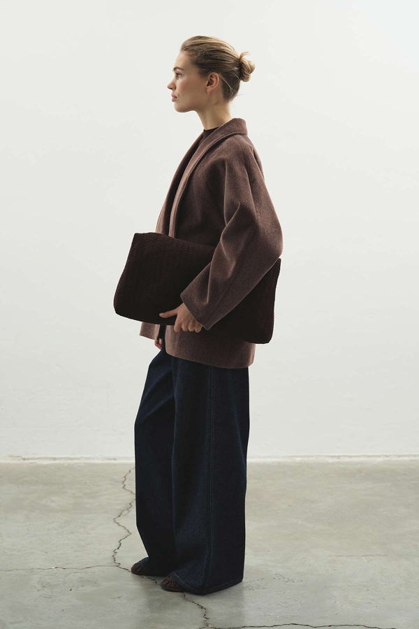 يقدم هذا المعطف المصنوع من خليط الصوف ملمسًا دافئًا وناعمًا، بينما يعمل حزام الخصر على إبراز القوام بأناقة. خطوطه النظيفة تخلق بساطة عصرية، وشكله المتدفق يضيف أناقة طبيعية ومتطورة للستايل الحضري.