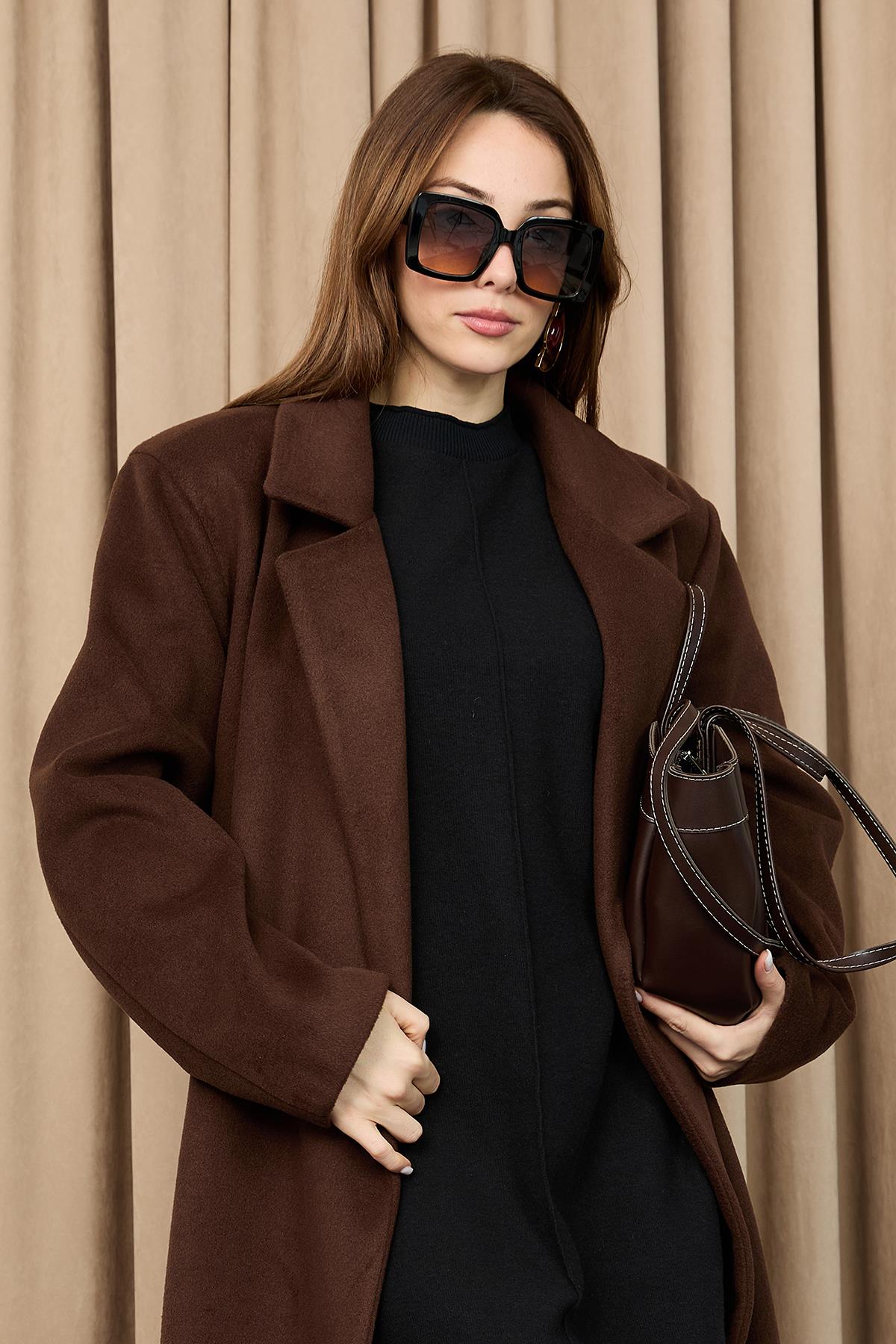 معطف كشمير نسائي ذو طية صدر السترة – 15237KBN – بني
