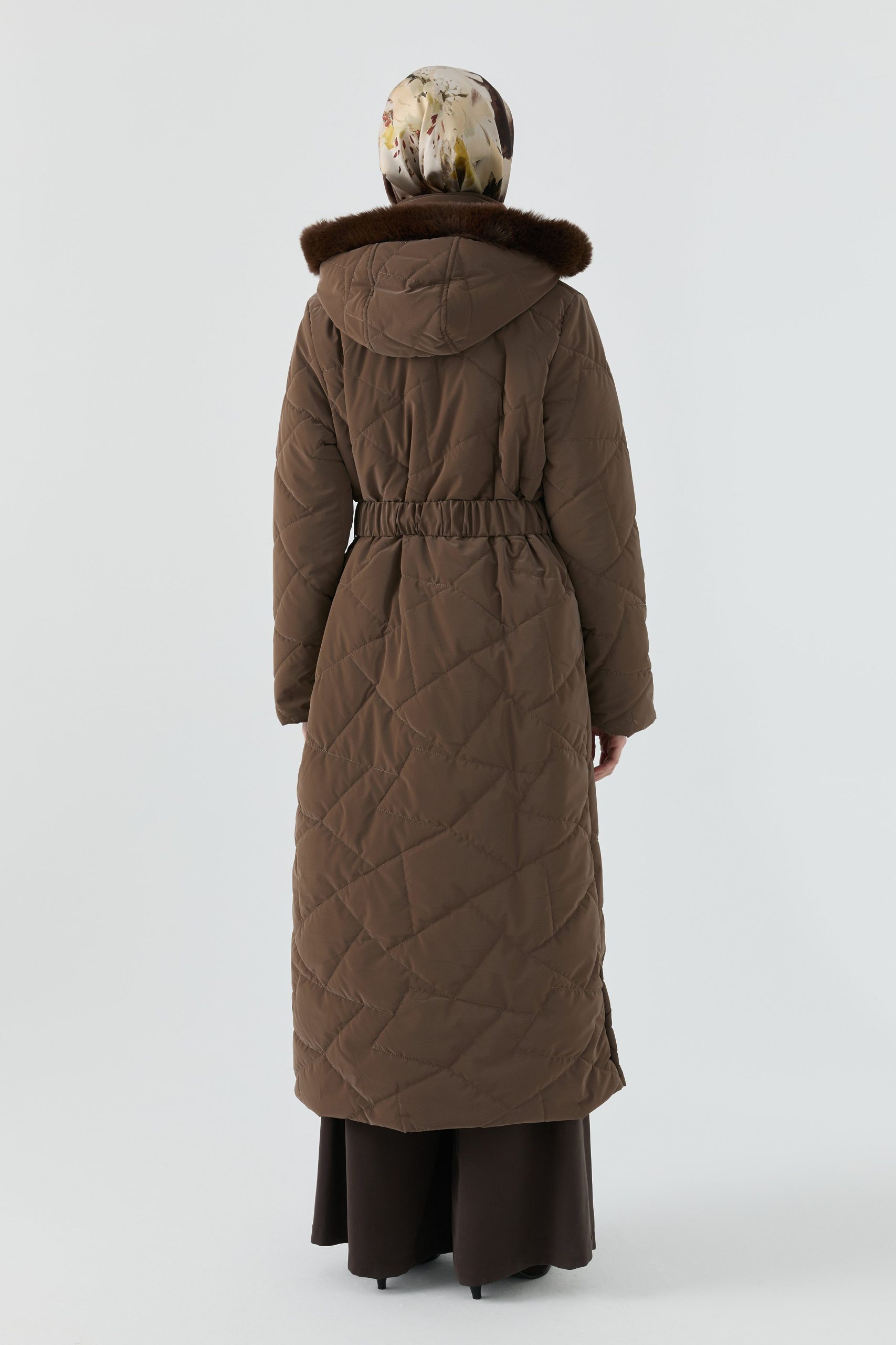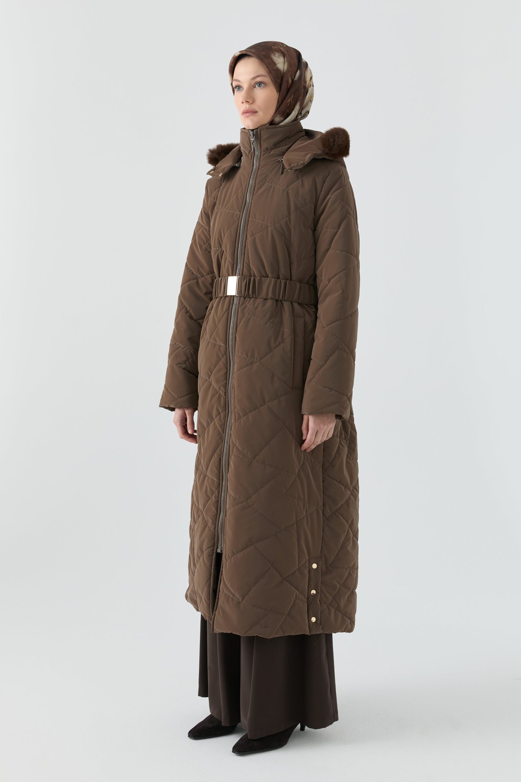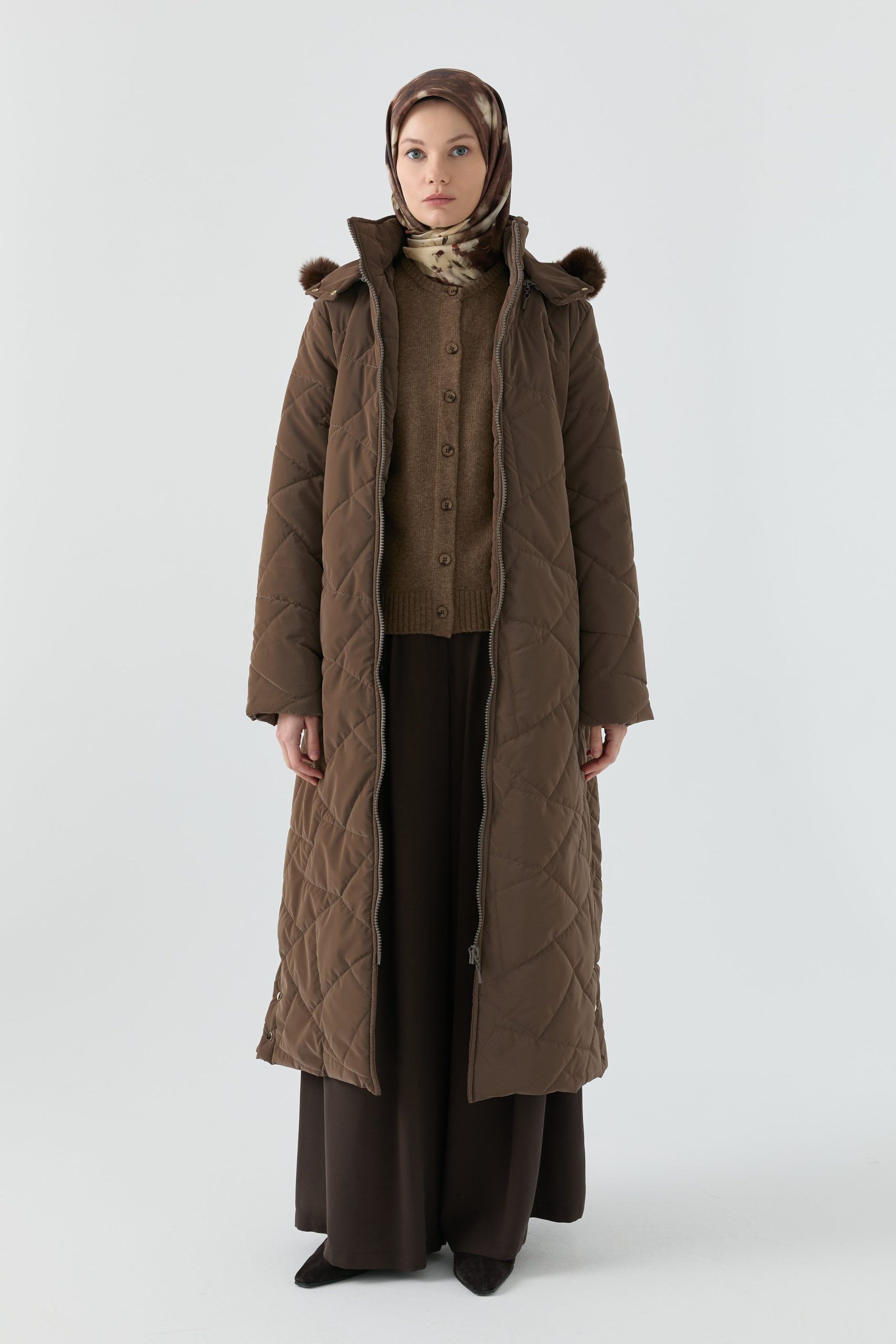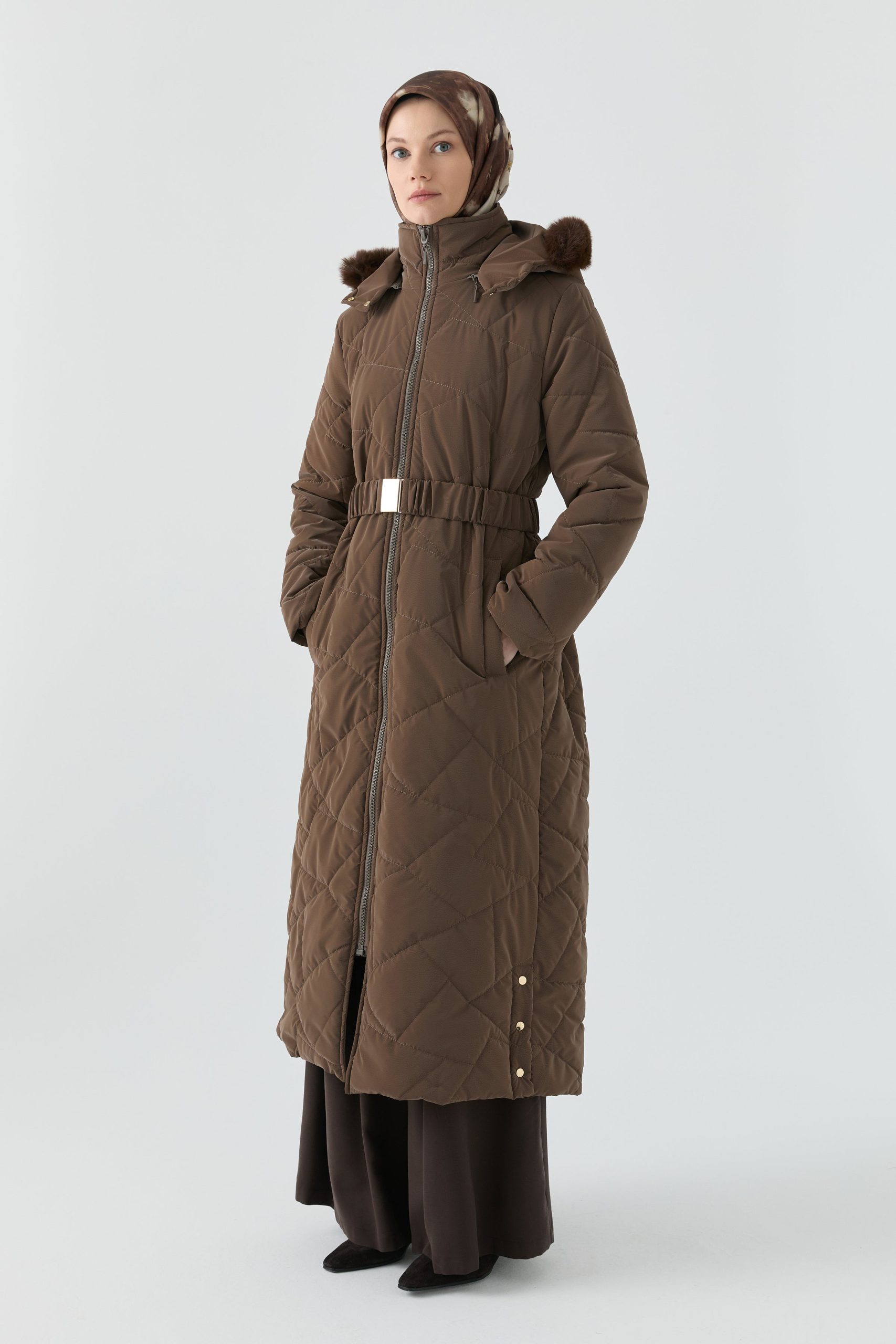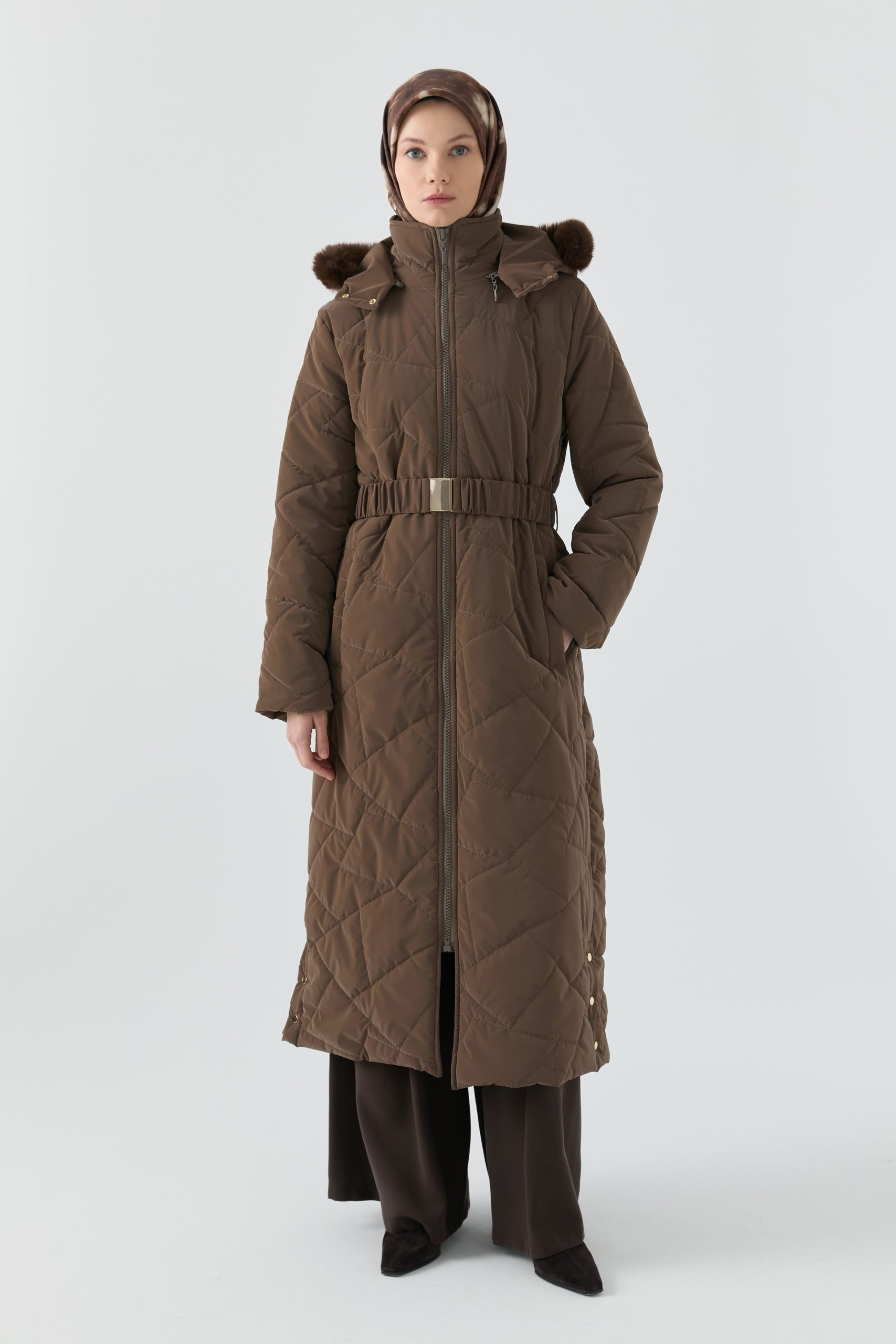 معطف مُلَفَّف بتصميم كسر الزجاج – اللون البني