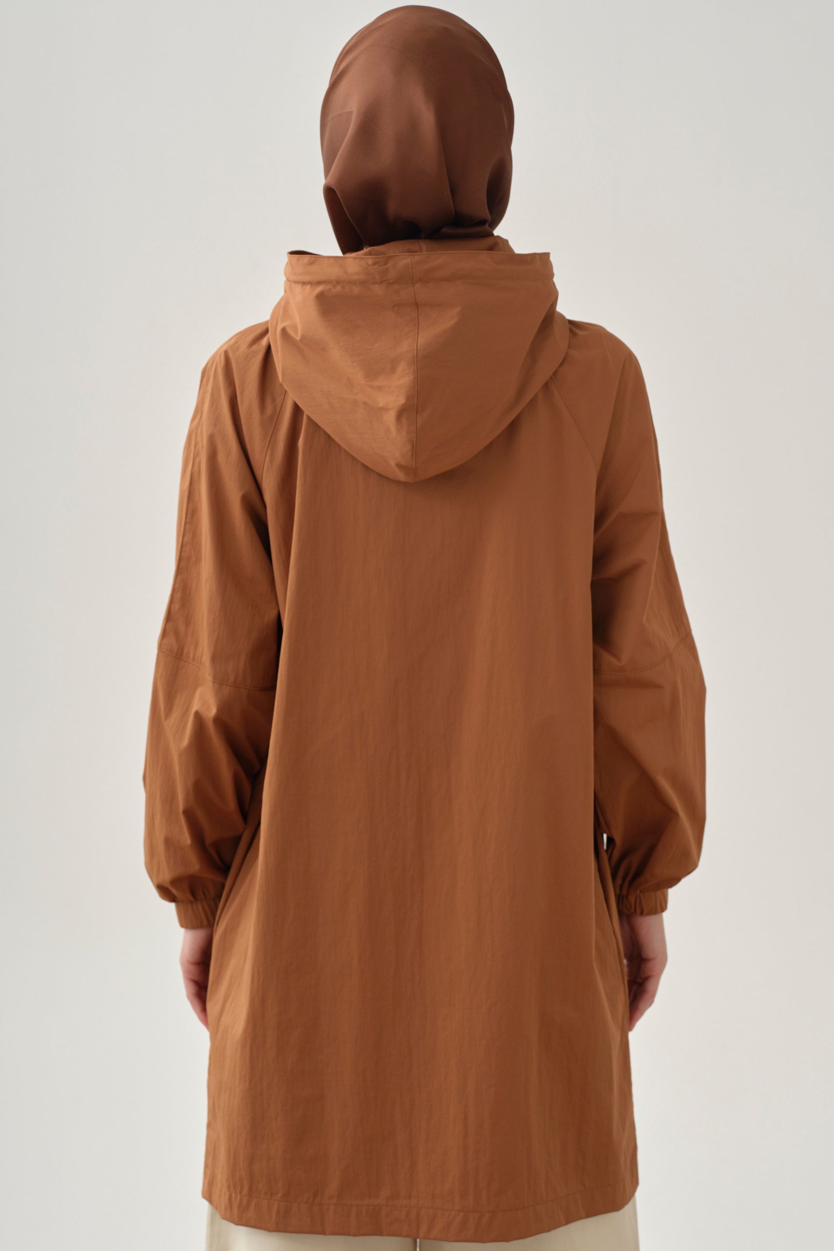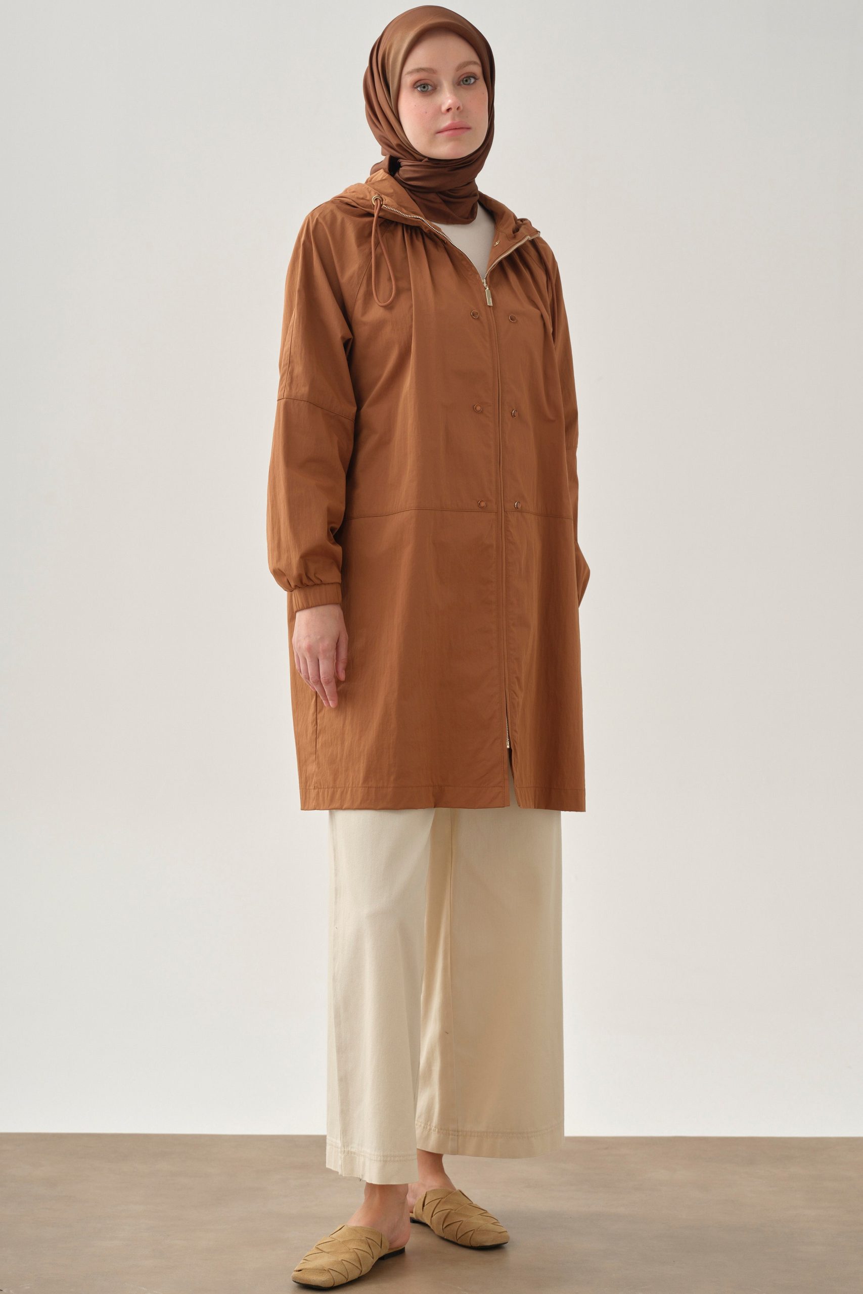 معطف واق من المطر بسحاب ورباط – لون قهوة