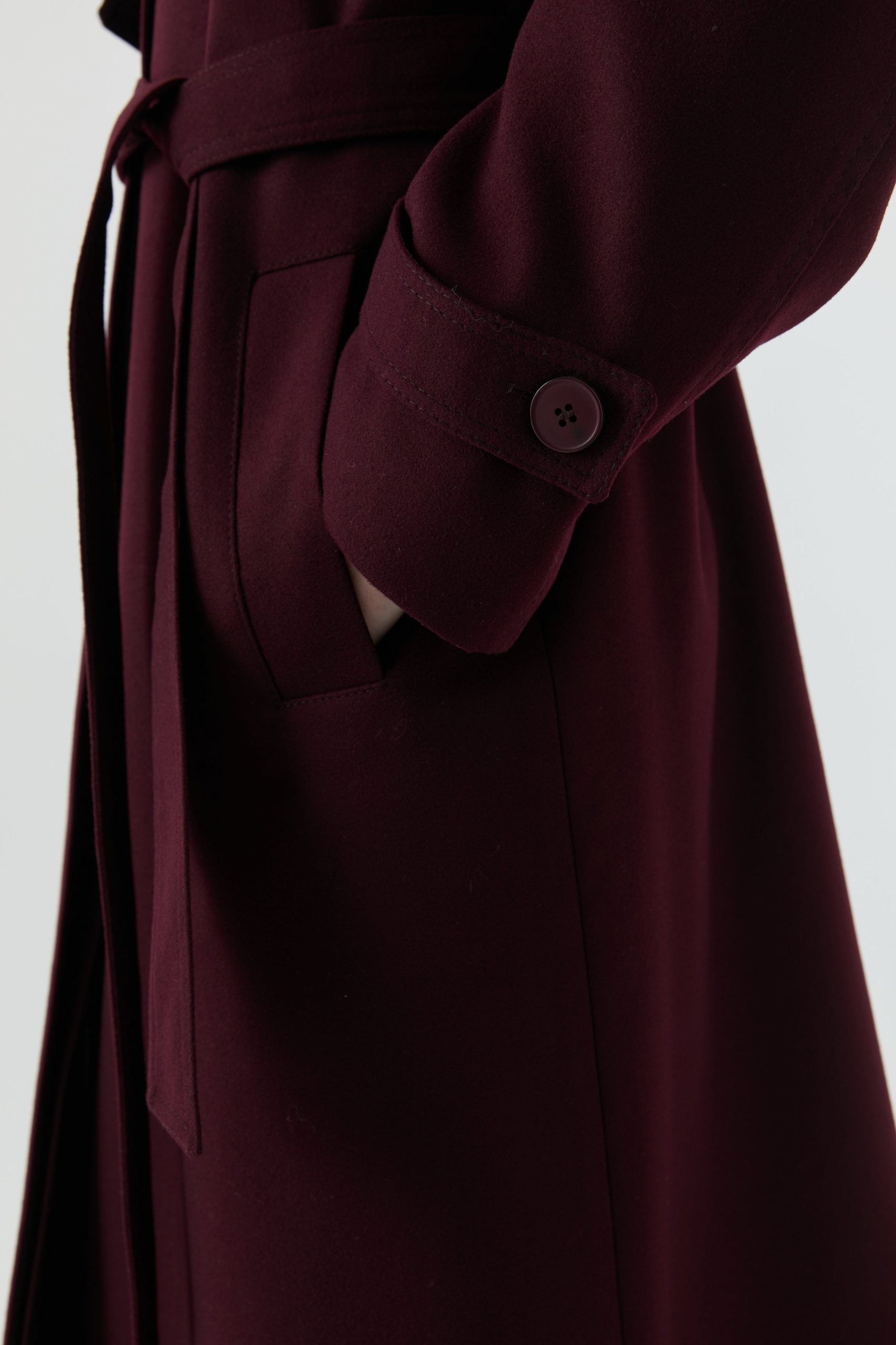 يتميز هذا المعطف بتصميم ياقة منتصبة تمنح وقفة عصرية وقوية، لترفع الأناقة الحضرية إلى مستوى راقٍ بخطوطه النظيفة وشكله الأنيق. يقطع التصميم الهيكلي الصورة الظلية بشكل مثالي بينما توفر نسيجه الدافئ الراحة أثناء التغيرات الموسمية.