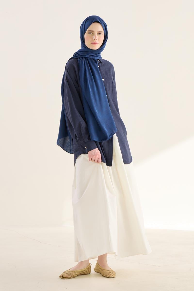 وشاح جاكار أزرق بحري بنمط حلزوني