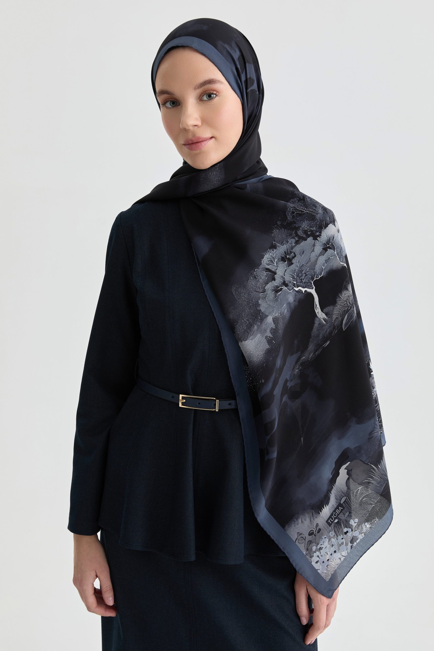 يجمع وشاح حرير كريب مارين بين القوام المتدفق لقماش الكريب والتدلي الأنيق للحرير. يتميز بقوامه الخفيف والناعم مما يسهل تنسيقه، ويوفر ارتداءً مريحاً طوال اليوم.