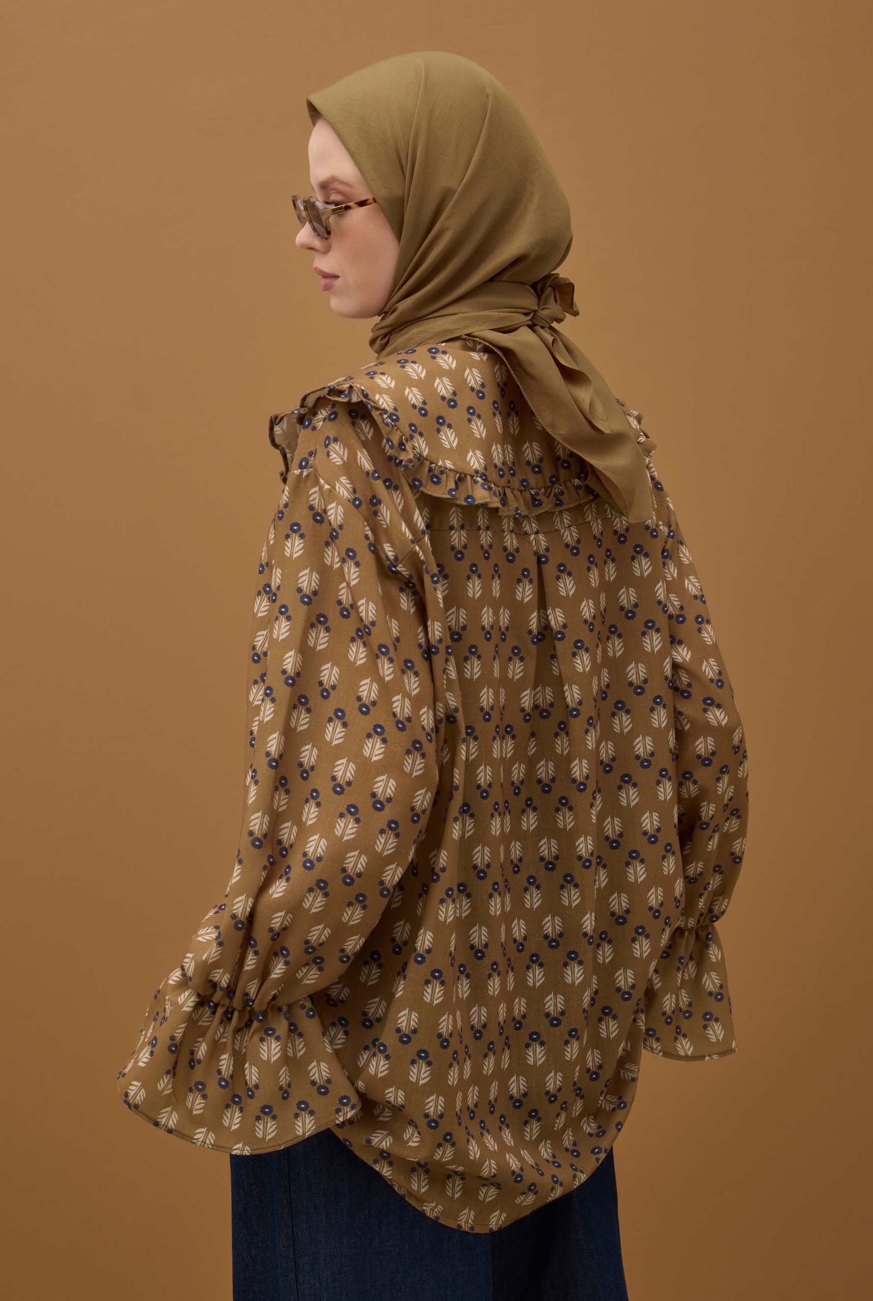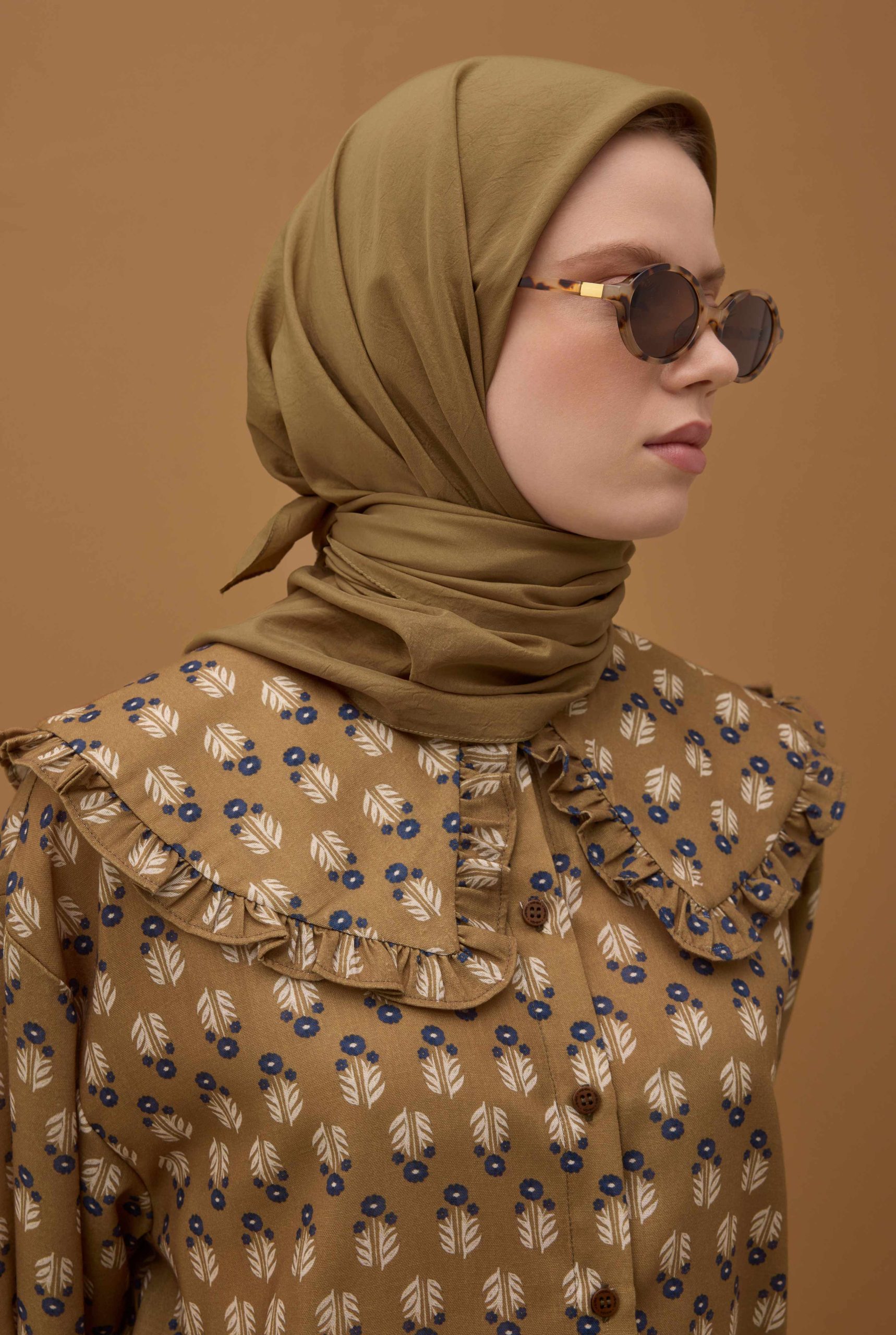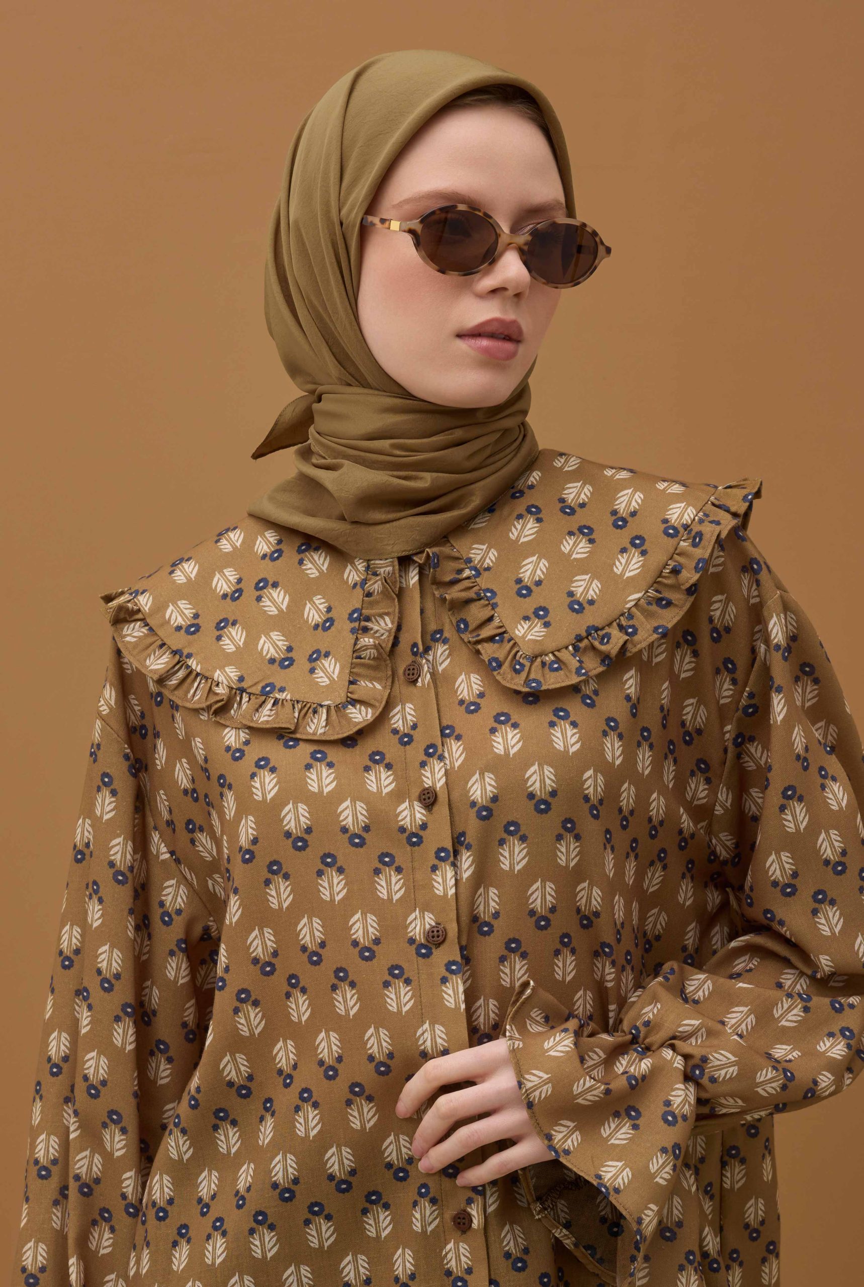 وشاح ناعم مجعد بلون المومياء البني