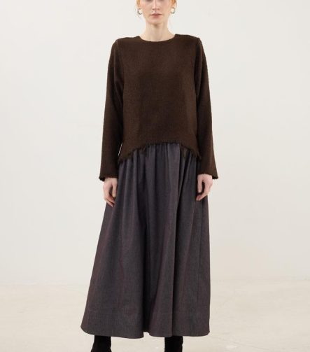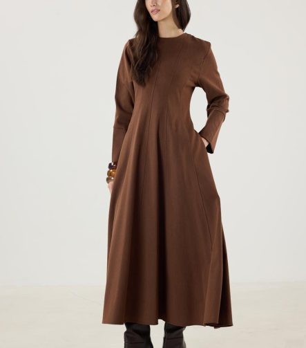 فستان التنورة الجينز – البني الداكن