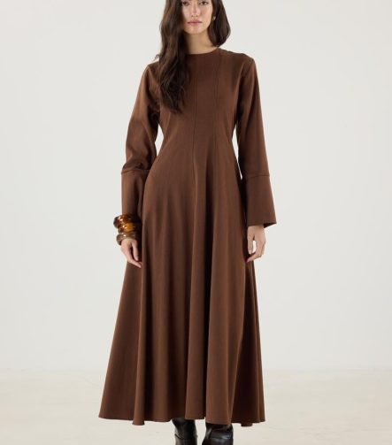 فستان بيج ذو أكمام واسعة وتصميم على شكل حرف A
