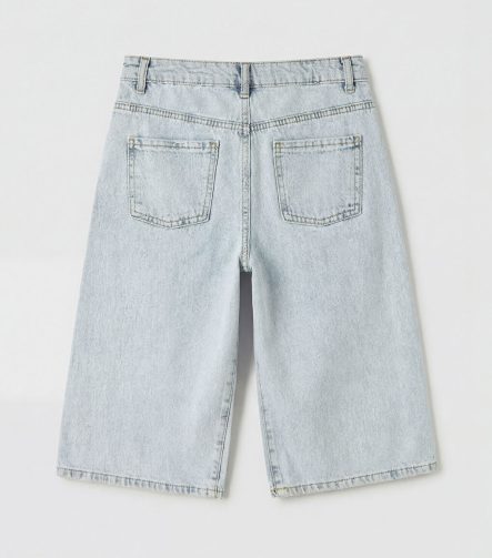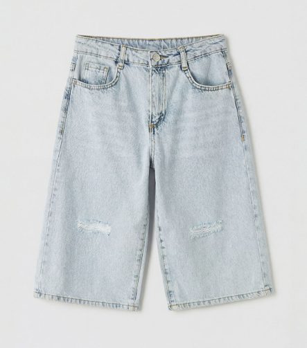 شورت جينز للبنات بتفاصيل ممزقة باللون الأزرق