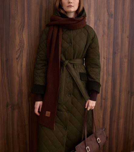 معطف طويل مبطن بالكويخي الداكن