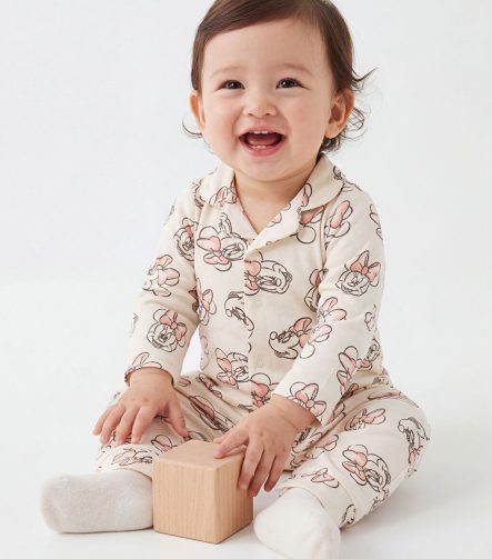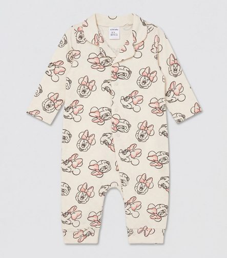 بدلة رضيع بنات مطبوعة بطباعة ميني ماوس بلون البيج