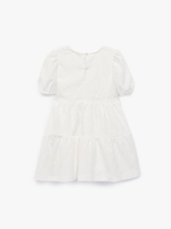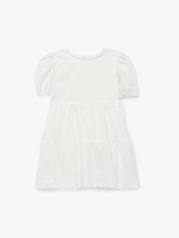 يتميز هذا الفستان الأنيق بتفاصيله الساحرة. تصميمه المتعدد الطبقات والأكمام المنفوخة يتناسب تماماً مع المظهر النشاطي للصغيرات. مصنوع من قماش
