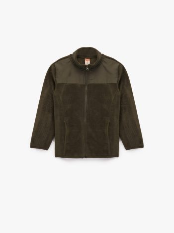 سترة قطبية للأطفال الذكور بأكمام طويلة وجيب وسحاب