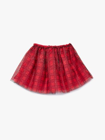 تنورة تول للفتيات ذات خصر مطاطي ورقعة متقاطعة وبريق