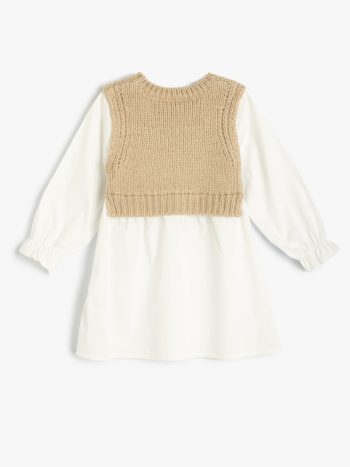 فساتين بنات بأكمام طويلة ورقبة مستديرة بتفاصيل سويتر