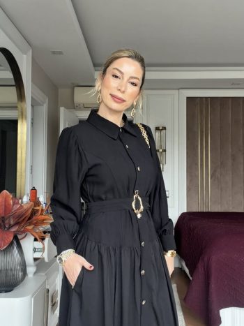 هذا الطقم مصنوع من قماش الدنيم عالي الجودة من الدرجة الأولى. يتميز الجزء العلوي بتفصيلة ربطة عنق أنيقة. التنورة تحتوي