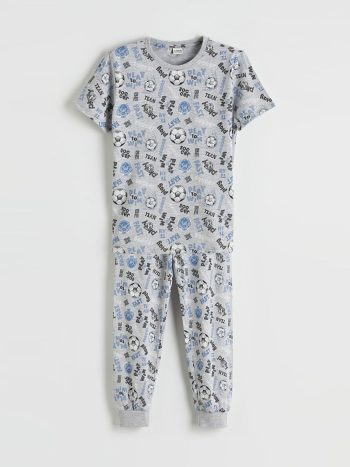 مجموعة بيجاما للأولاد بلون رمادي بطباعة رقبة الدراجة