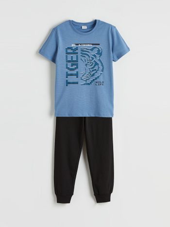 طقم بيجاما للأولاد مطبوع باللون الأزرق