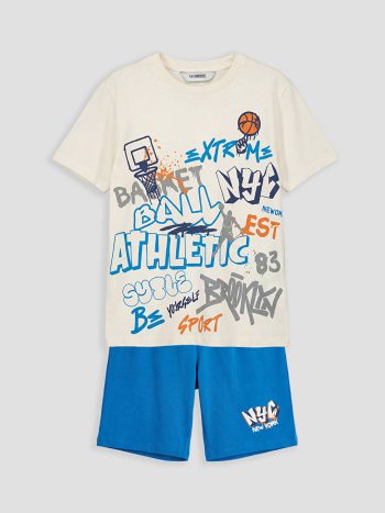 مجموعة بيجاما قصيرة للصبيان بلون البيج مع ياقة مستديرة من LCW Kids متاحة الآن لدى LCW مع خصومات حصرية، خيارات