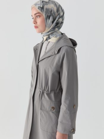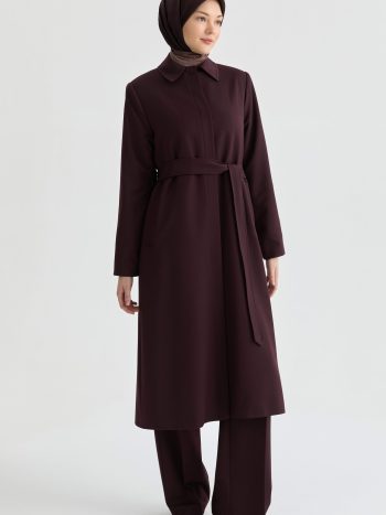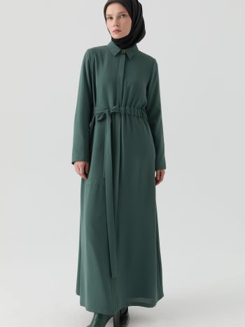 عباءة ذات رباط على الخصر – كاكي