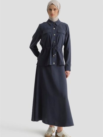 مجموعة باللون الأزرق الداكن مع خصر مربوط