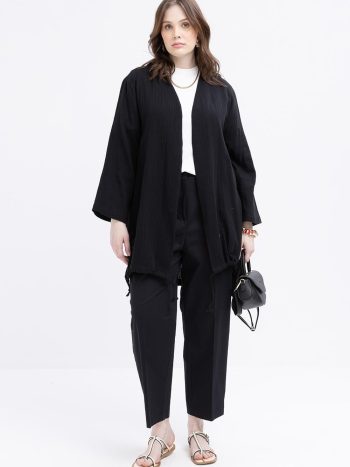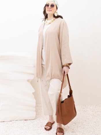 عباءة بحاشية مرصعة بحجارة ومطاطية بإغلاق مشبكي