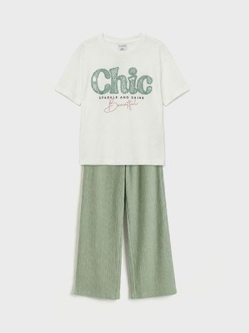 تيشيرت وبنطلون للأطفال من LC WAIKIKI بنقشة رقبة الدراجة باللون الأخضر متاح الآن في LCW مع خصومات حصرية ودفع بالتقسيط