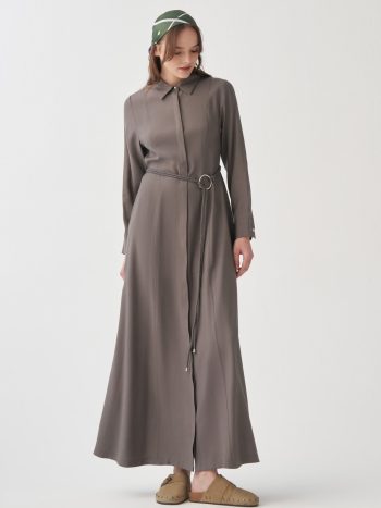 فستان أنثراسيت بتفاصيل الحزام