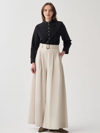 بنطلون واسع الأرجل مطوي بحزام حجري