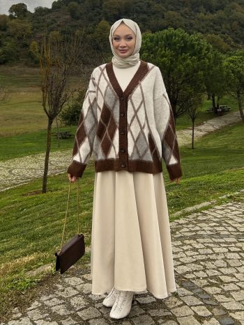 سترة DİLVİN بنقشة البقلاوة – اللون البني