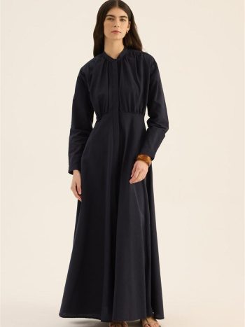 فستان أزرق بحري بقوام مجعد