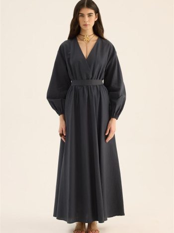 يقدم تصميم الياقة على شكل V والأكمام الطويلة مزيجاً من الأناقة والراحة. تتيح تفاصيل المطاط عند منطقة الخصر مظهراً متناسقاً مع الجسم مع الحرية في الحركة. مناسب لمجموعة واسعة من المناسبات، من الاستخدام اليومي إلى الحفلات المسائية في الصيف.