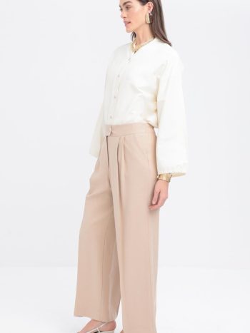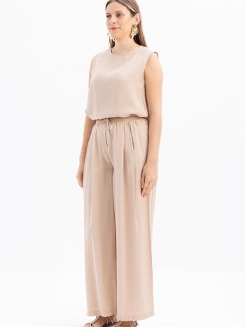 بنطلون بالازو مودال بخصر مطاطي بلون بيج