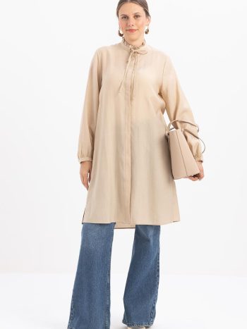 استمتع بأسلوب عصري ومريح مع قميصنا الطويل بيج بياقة مكشكشة ورباط. استكشف النماذج الأخرى في فئة القمصان لدى ALLDAY. اكتشف