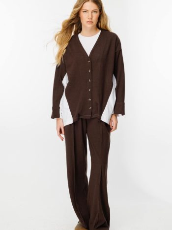 طقم بنطلون قهوة مع كنزة بوبلين محبوكة بتفاصيل أنيقة