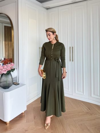 فستان هاكي مطرز