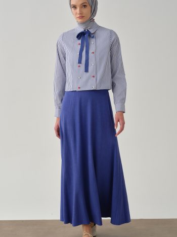 تنورة بتفاصيل غرز سداسية الألواح – أزرق ساكسوني