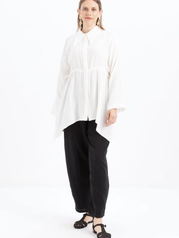 قميص أبيض غير متماثل بأزرار