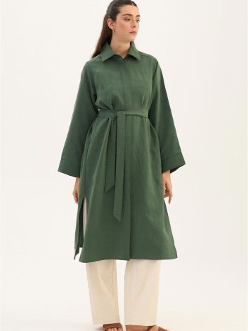 تونيك طويل مخطط من تنسيل باللون الأخضر الداكن