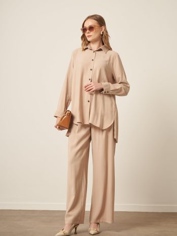 بدلة نسائية من مودال بجيوب بيج FTZ 30717
