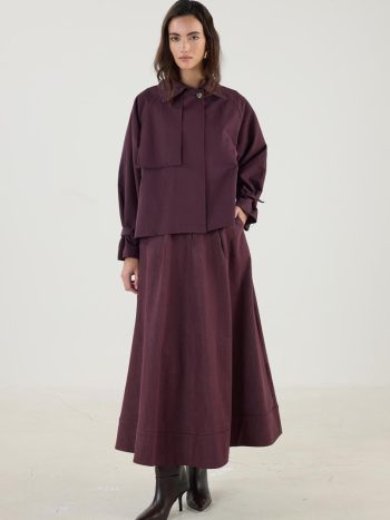معطف ترينش قصير بحزام وجيوب بلون الموردم