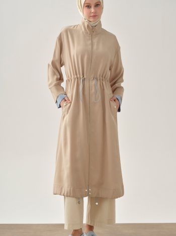 معطف بخصر مطاطي مع تنسيق داخلي – بيج